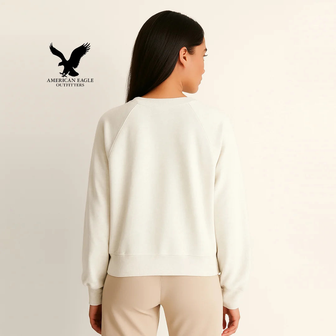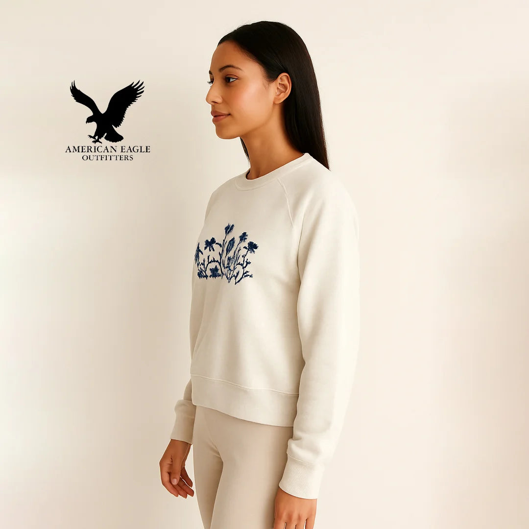 🌼 American Eagle Women’s Floral Sweatshirt – Soft Cream Comfort with Style